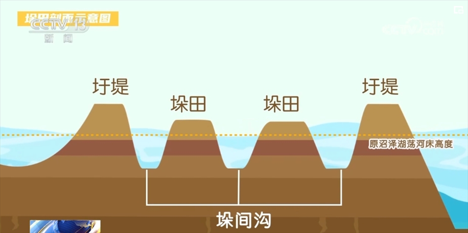 向下挖出“網”狀深溝、向上堆出“垛”狀高田,同樣的土量換個位置,就能將原本都在水下的地面,變成一高一低的垛田與河道,增加可耕種土地面積。