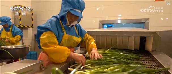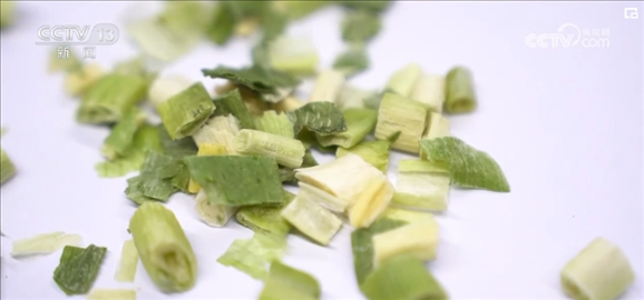 香蔥被運輸?shù)疆數(shù)氐募庸S后,經過洗、理、切、分揀裝盤,然后就開始了高科技的“蛻變”之旅。工人先把香蔥放入冷庫冷凍數(shù)小時,然后立即抽真空“升華”干燥,經過48小時左右的一系列工序后,一棵香蔥就變成了脫水蔬菜。留學回國創(chuàng)業(yè)的王一盛介紹,與過去使用的熱風干燥技術相比,這種新技術不僅讓垛田香蔥最大程度鎖鮮,價格也比過去增加了五六倍。