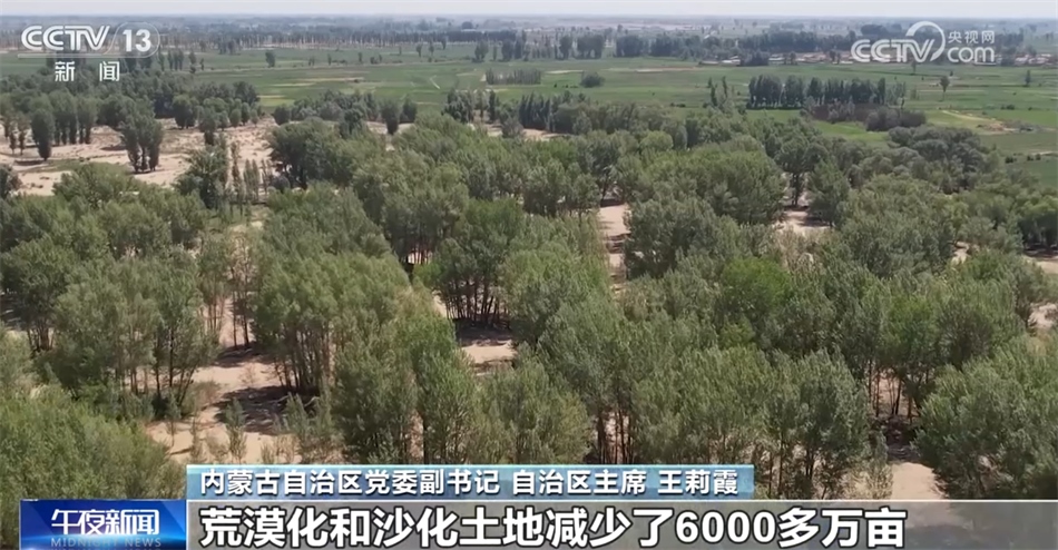 內(nèi)蒙古自治區(qū)黨委副書記、自治區(qū)主席王莉霞表示,從我國北方重要生態(tài)安全屏障來講,內(nèi)蒙古生態(tài)狀況如何,不僅僅關(guān)乎到全區(qū)各族群眾的生存和發(fā)展,也關(guān)乎華北、東北、西北乃至全國的生態(tài)安全?,F(xiàn)在回望十年來,全區(qū)累計造林、種草、防沙治沙規(guī)模均居全國首位,草原植被蓋度達到45%,荒漠化和沙化土地減少6000多萬畝,實現(xiàn)了從“沙進人退”到“綠進沙退”的歷史性轉(zhuǎn)變。