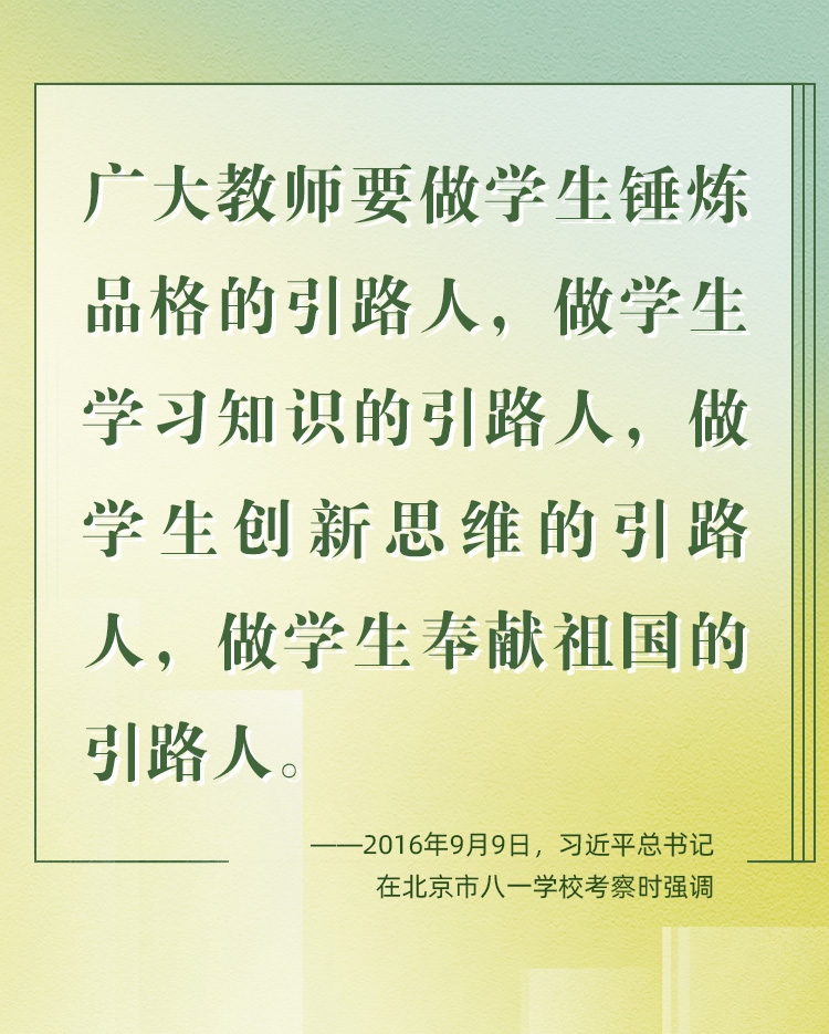 他們帶領(lǐng)學生前行,更新舊知、開掘新知、探索未知;他們肩負光榮使命,為黨育人、為國育才、為民育未來。守教育報國初心、擔立德樹人使命、圓民族復(fù)興之夢,建設(shè)社會主義現(xiàn)代化強國之路上,教育家精神自當念茲在茲、代代傳承、光芒永綻。