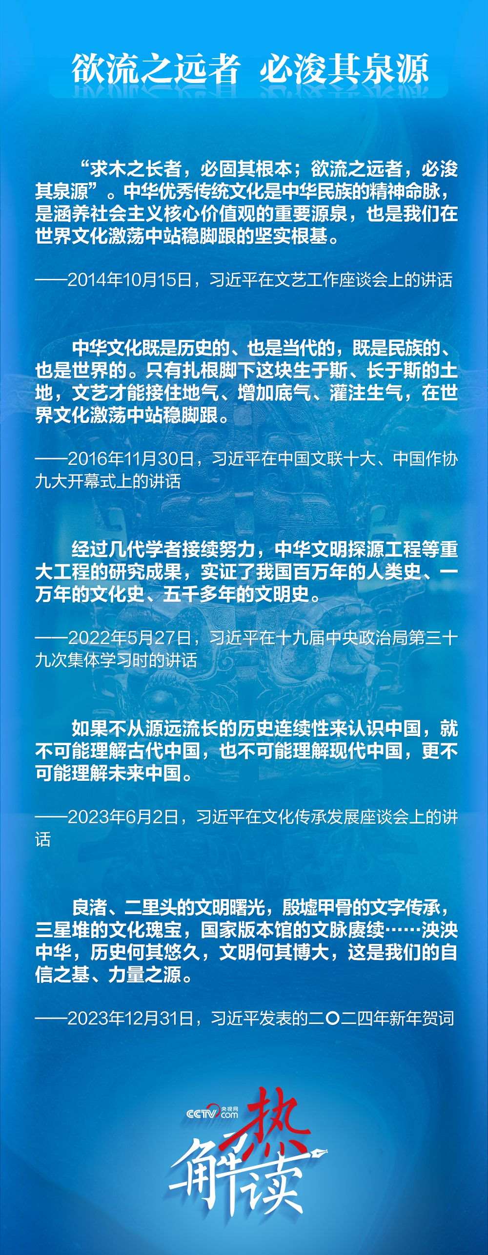 一件件文物、一處處文化古跡、一項項文化藝術(shù),串連起中華民族的文化史,蘊藏著“何以中國”的文化力量??倳泴χ腥A文明之源的關(guān)注,彰顯的正是他對推動文化繁榮、建設(shè)文化強(qiáng)國的深刻思考和文化自信。
