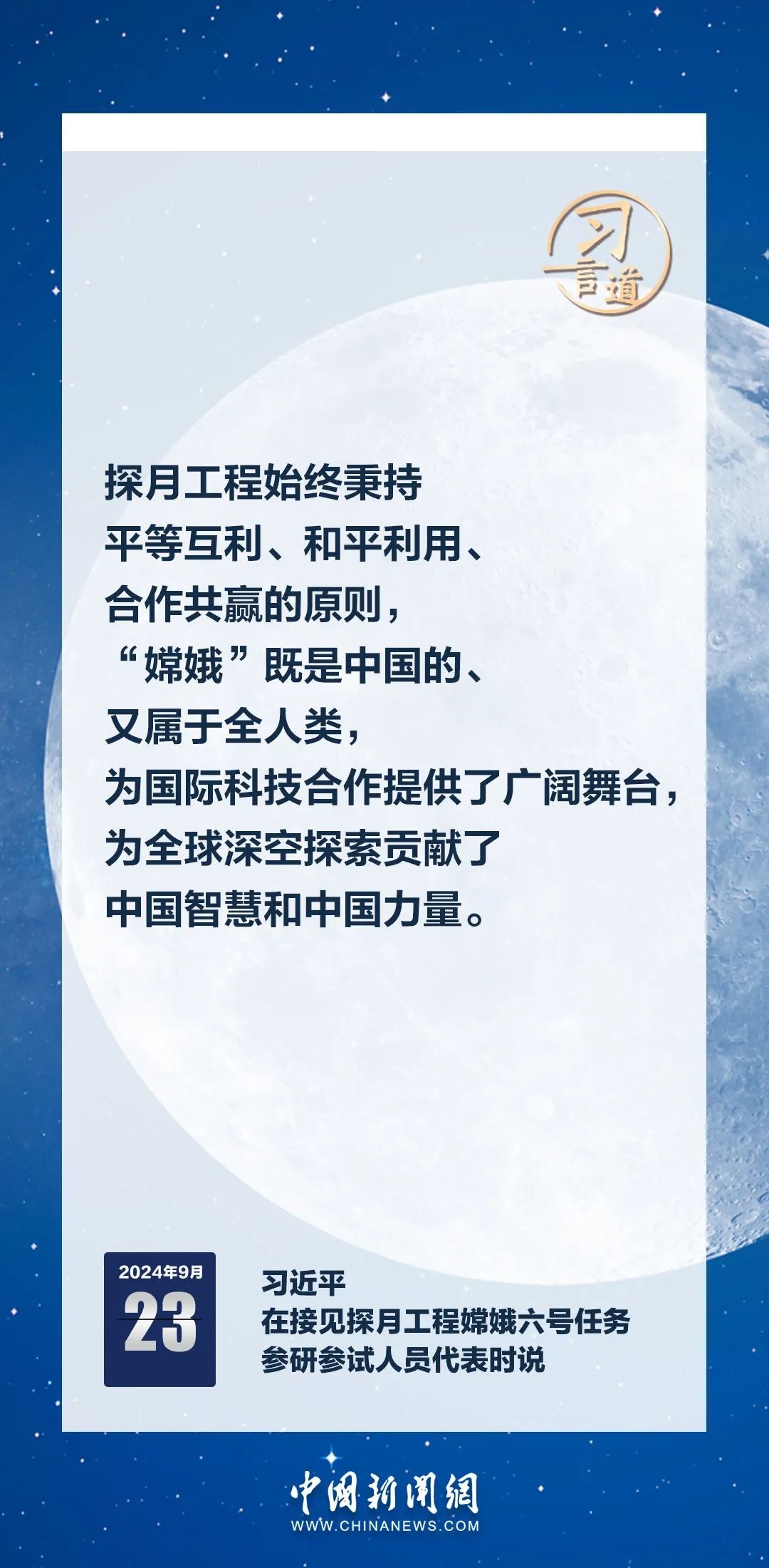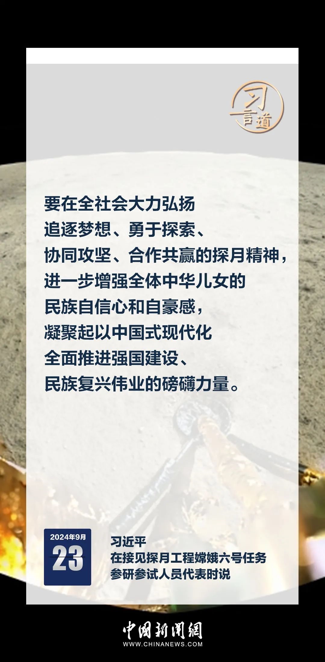 中共中央總書(shū)記、國(guó)家主席、中央軍委主席習(xí)近平23日在人民大會(huì)堂接見(jiàn)探月工程嫦娥六號(hào)任務(wù)參研參試人員代表時(shí)發(fā)表重要講話(huà)。習(xí)近平指出——
