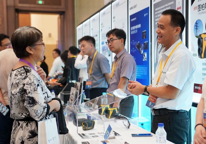 2024年8月8日,在上海舉行的第七屆進博會技術(shù)裝備、汽車展區(qū)展前供需對接會現(xiàn)場,展商工作人員(右)向采購商介紹企業(yè)產(chǎn)品。新華社發(fā)(陳浩明 攝)
