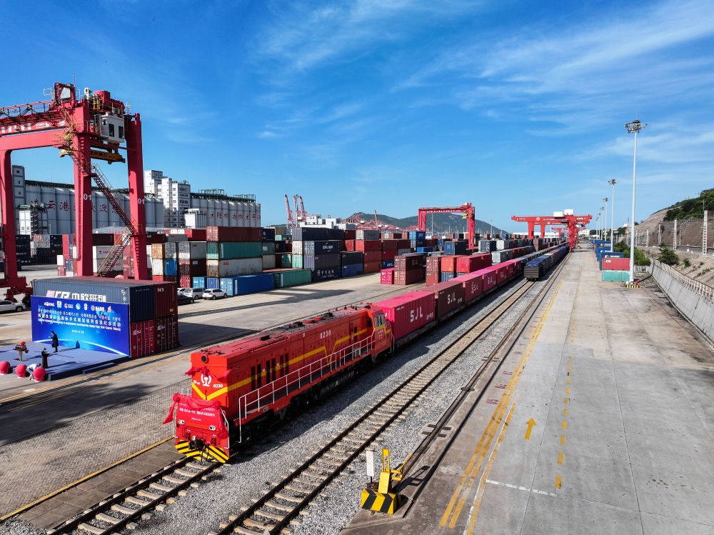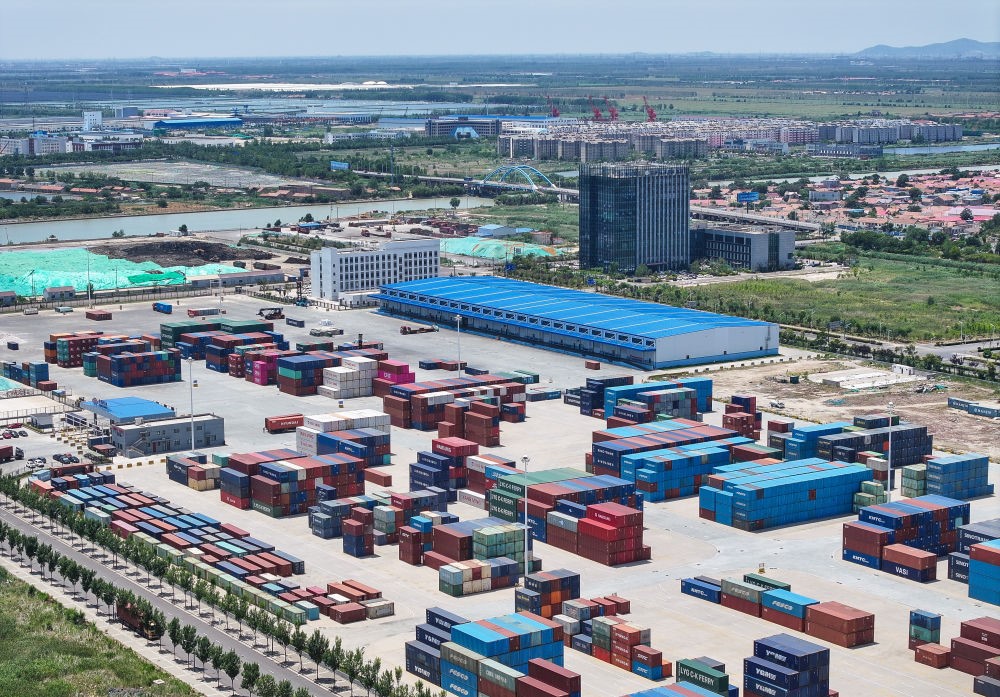 上合組織(連云港)國際物流園內的集裝箱場站(2024年6月26日攝,無人機照片)。