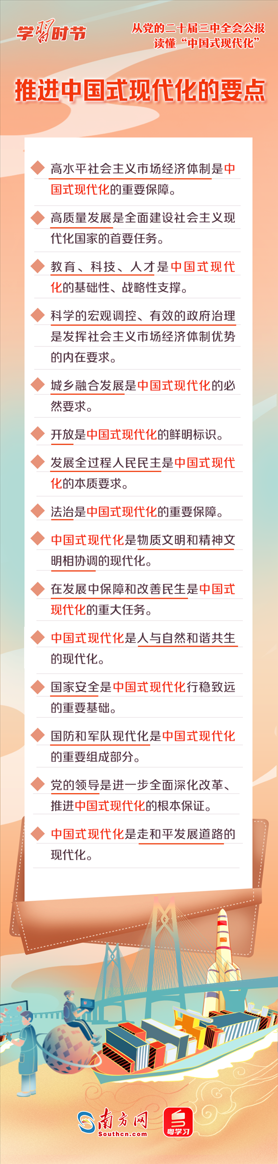 中國式現(xiàn)代化是中國共產黨和中國人民長期實踐探索的成果,是一項偉大而艱巨的事業(yè)。全會公報中,“中國式現(xiàn)代化”一詞被反復提及,深刻闡述了進一步全面深化改革與推進中國式現(xiàn)代化的關系,以及中國式現(xiàn)代化的重要保障、必然要求、本質要求等重要內容。一起來學習!
