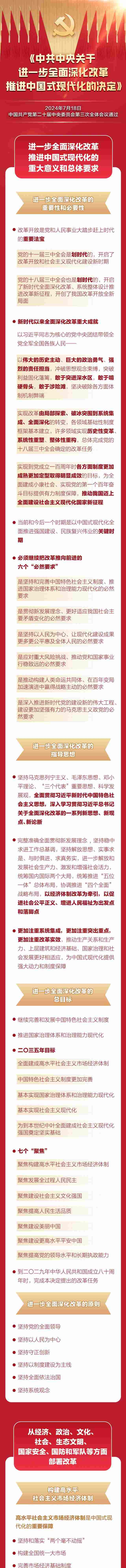 7月15日至18日,黨的二十屆三中全會在北京舉行。全會審議通過了《中共中央關(guān)于進(jìn)一步全面深化改革、推進(jìn)中國式現(xiàn)代化的決定》。