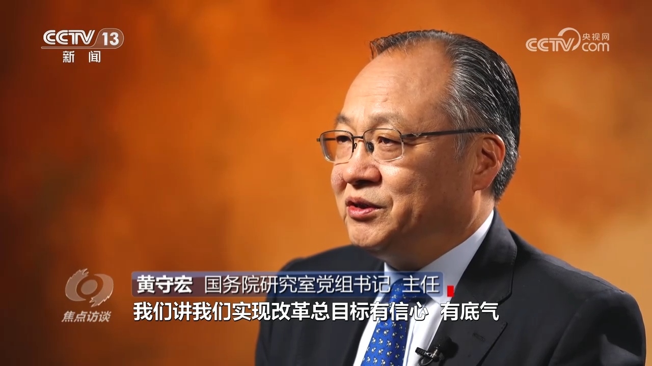 黃守宏:“在進一步全面深化改革總目標中,明確了到2035年的階段性改革目標,‘七個聚焦’的分領域改革目標,明確了到2029年完成《決定》提出的改革任務的要求,形成了在總目標的統(tǒng)領之下,有總有分、總分結合、體系完備的目標體系和推進改革的時間表、路線圖、任務書。”
