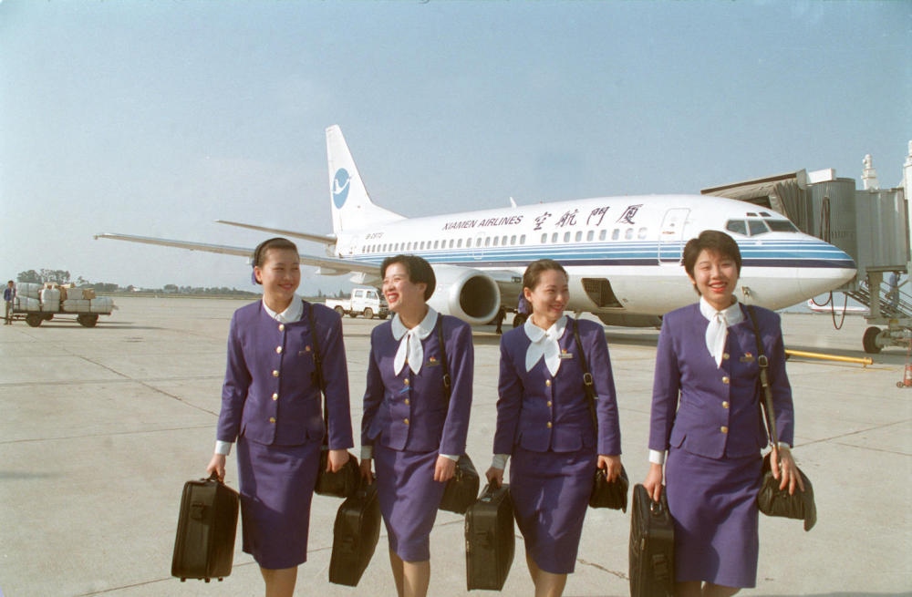 這是飛行歸來(lái)的廈航乘務(wù)員(1997年4月23日攝)。新華社記者 張國(guó)俊 攝