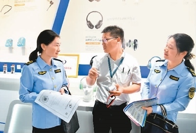 湖北省咸寧市通城縣立足企業(yè)創(chuàng)新創(chuàng)造,持續(xù)優(yōu)化營(yíng)商環(huán)境。目前,該縣已建成省級(jí)知識(shí)產(chǎn)權(quán)保護(hù)站2個(gè),幫助企業(yè)更好解決專利服務(wù)、知識(shí)產(chǎn)權(quán)融資等需求。圖為該縣經(jīng)濟(jì)開(kāi)發(fā)區(qū)一家民營(yíng)企業(yè)內(nèi),市場(chǎng)監(jiān)管工作人員在了解企業(yè)專利產(chǎn)品生產(chǎn)狀況。劉建平攝(人民視覺(jué))
