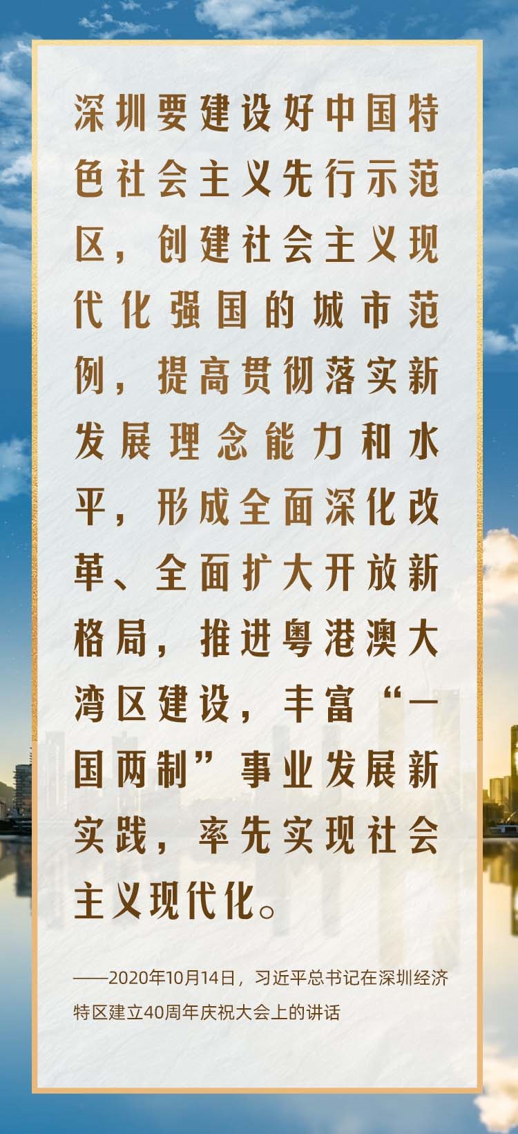 2020年10月,在慶祝深圳經(jīng)濟(jì)特區(qū)建立40周年之際,習(xí)近平總書記又一次來到這里,出席慶祝大會,強(qiáng)調(diào)改革不停頓、開放不止步,在更高起點(diǎn)上推進(jìn)改革開放,推動經(jīng)濟(jì)特區(qū)工作開創(chuàng)新局面。