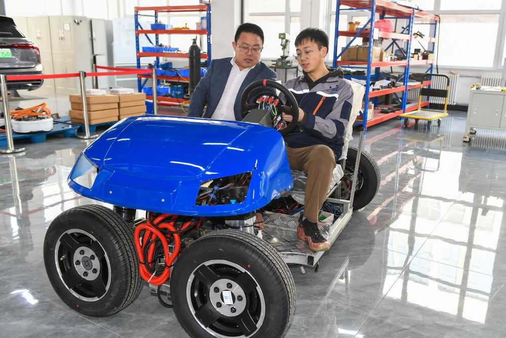 2024年3月13日,在吉林長春一家汽車科技企業(yè),吉林大學汽車工程學院教授靳立強(左)試乘智能底盤樣車。2023年,長春市科技局和吉林大學共建吉林大學概念驗證中心,一手對接高校,一手對接企業(yè),確保科研成果在技術路線和商業(yè)模式上的可行性,實現(xiàn)“從0到1”的轉(zhuǎn)化。