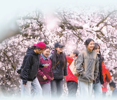 桃花盛開游客來