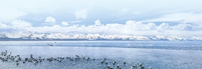 巍峨的念青唐古拉山與壯美的納木錯(cuò)相映成景。孫志芳攝(影像中國)