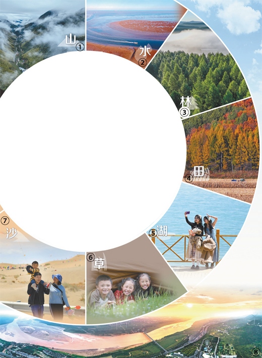 圖①:雨后的武夷山國(guó)家公園云霧繚繞。國(guó)家公園是我國(guó)自然生態(tài)系統(tǒng)中最重要、自然景觀(guān)最獨(dú)特、自然遺產(chǎn)最精華、生物多樣性最富集的部分,我國(guó)國(guó)家公園建設(shè)是生態(tài)文明建設(shè)中具有示范引領(lǐng)意義的工程。邱汝泉攝(新華社發(fā))圖②:山東東營(yíng)市紅灘濕地旅游區(qū)生態(tài)濕地,生長(zhǎng)在灘涂上的堿蓬等鹽生植物,如同一塊巨大的紅地毯。劉智峰攝(影像中國(guó))圖③:河北承德市圍場(chǎng)滿(mǎn)族蒙古族自治縣塞罕壩國(guó)家森林公園。組建至今,塞罕壩機(jī)械林場(chǎng)營(yíng)造人工林百萬(wàn)畝,創(chuàng)造了荒原變林海的奇跡。劉滿(mǎn)倉(cāng)攝(影像中國(guó))圖④:黑龍江雞西密山市黑土地上種植的玉米。近年來(lái),我國(guó)加強(qiáng)黑土地保護(hù),守護(hù)“耕地中的大熊貓”。孫樹(shù)寶攝(影像中國(guó))圖⑤:游客在青海湖畔拍照。當(dāng)?shù)亓己玫纳鷳B(tài)環(huán)境和優(yōu)美的景色吸引了來(lái)自全國(guó)各地的大量游客。新華社記者 張 龍攝圖⑥:四川甘孜藏族自治州日通草原上,躲在帳篷里的小朋友享受假日生活。我國(guó)持續(xù)推進(jìn)草原生態(tài)保護(hù)修復(fù),穩(wěn)步提升草原生態(tài)功能。新華社記者 江宏景攝圖⑦:新疆博湖縣博斯騰湖畔的艾勒遜烏拉沙漠,游客正帶著孩子在游玩。近年來(lái),我國(guó)推進(jìn)科學(xué)化、規(guī)?;紊?,重點(diǎn)治理區(qū)實(shí)現(xiàn)“沙進(jìn)人退”到“綠進(jìn)沙退”的歷史性轉(zhuǎn)變。年 磊攝(人民視覺(jué))圖⑧:黃河陜西潼關(guān)段景觀(guān)。近年來(lái),我國(guó)持續(xù)推動(dòng)黃河流域生態(tài)保護(hù)和高質(zhì)量發(fā)展,流域生態(tài)環(huán)境持續(xù)明顯向好,讓黃河成為造福人民的幸福河。王生暉攝(人民視覺(jué))