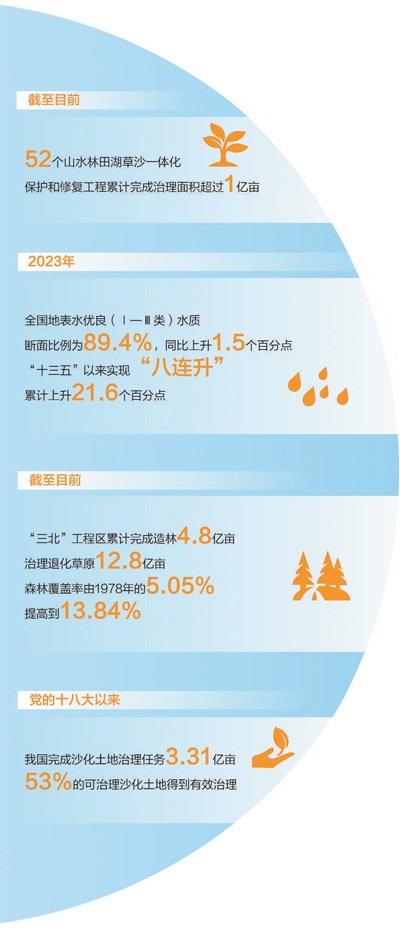 新中國(guó)成立75周年以來(lái),特別是黨的十八大以來(lái),我國(guó)生態(tài)環(huán)境保護(hù)和建設(shè)取得舉世矚目的成就。黨的二十屆三中全會(huì)通過(guò)的《中共中央關(guān)于進(jìn)一步全面深化改革、推進(jìn)中國(guó)式現(xiàn)代化的決定》提出,健全山水林田湖草沙一體化保護(hù)和系統(tǒng)治理機(jī)制。