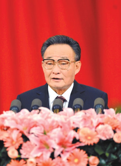 二〇一一年三月十日,十一屆全國人大四次會議在北京人民大會堂舉行第二次全體會議。吳邦國同志作全國人民代表大會常務(wù)委員會工作報告。新華社記者 謝環(huán)馳攝