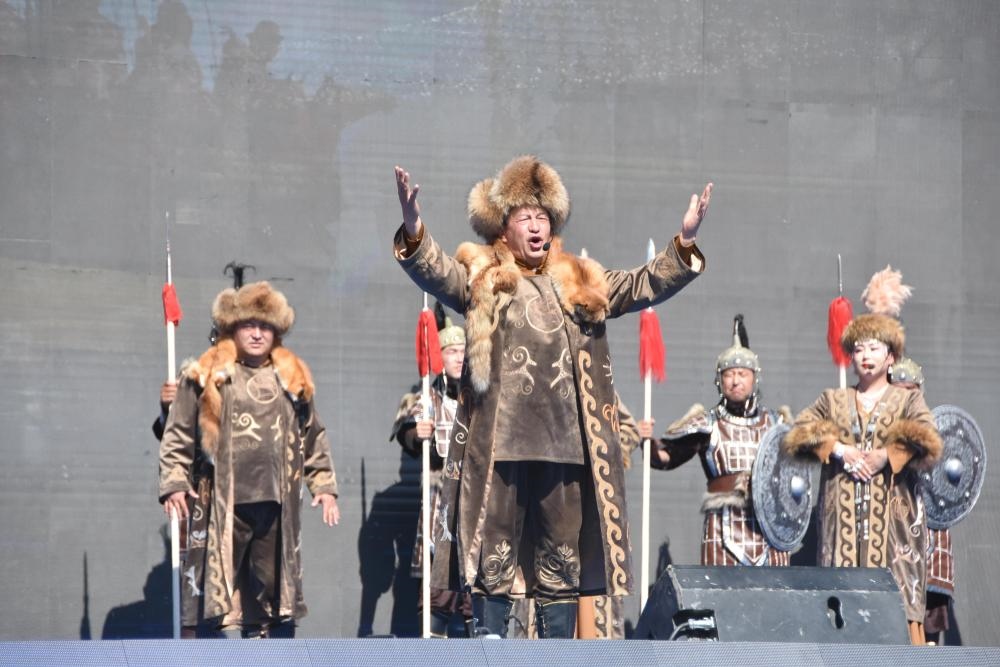 2023年7月13日,在新疆克孜勒蘇柯爾克孜自治州烏恰縣,歌舞演員在第九屆瑪納斯國際文化旅游節(jié)開幕式上表演《瑪納斯》片段。新華社記者 張瑜 攝