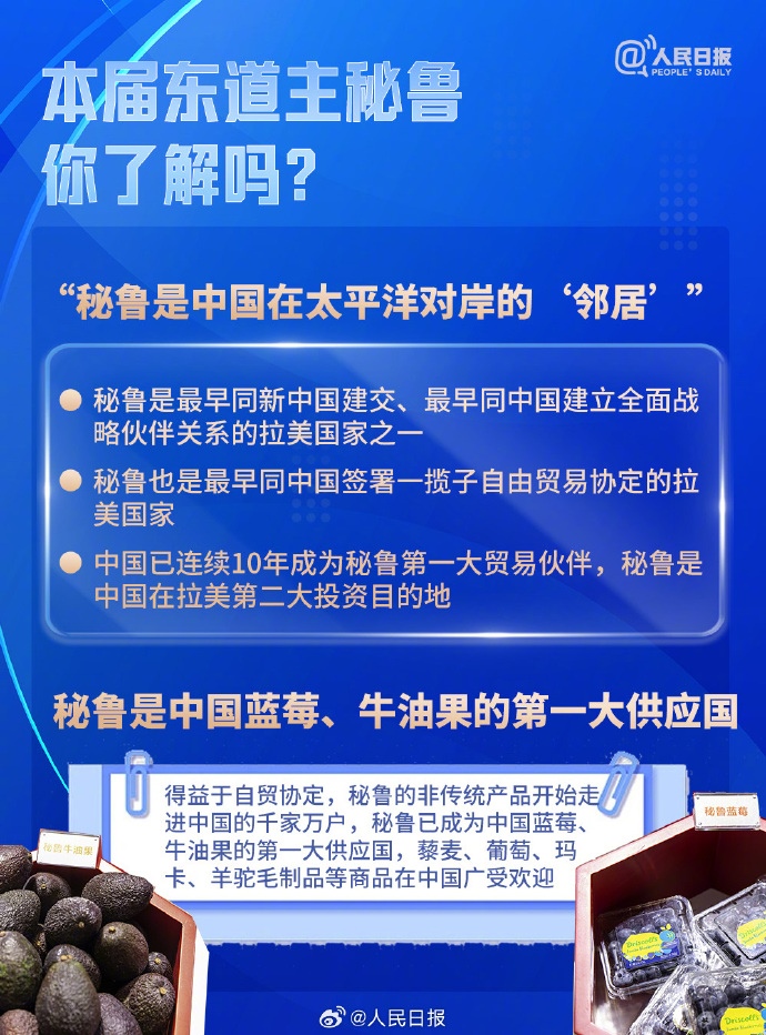 國(guó)家主席習(xí)近平將于11月13日至17日赴利馬出席亞太經(jīng)合組織第三十一次領(lǐng)導(dǎo)人非正式會(huì)議并對(duì)秘魯進(jìn)行國(guó)事訪問(wèn)。什么是亞太經(jīng)合組織(APEC)?你對(duì)本屆APEC東道主秘魯了解多少?你愛(ài)吃的藍(lán)莓牛油果可能來(lái)自這國(guó)……9圖知識(shí)帖↓↓轉(zhuǎn)存了解!