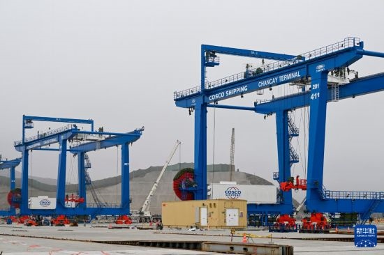 這是6月21日在秘魯錢(qián)凱港拍攝的碼頭操作區(qū)。 新華社記者 李木子 攝