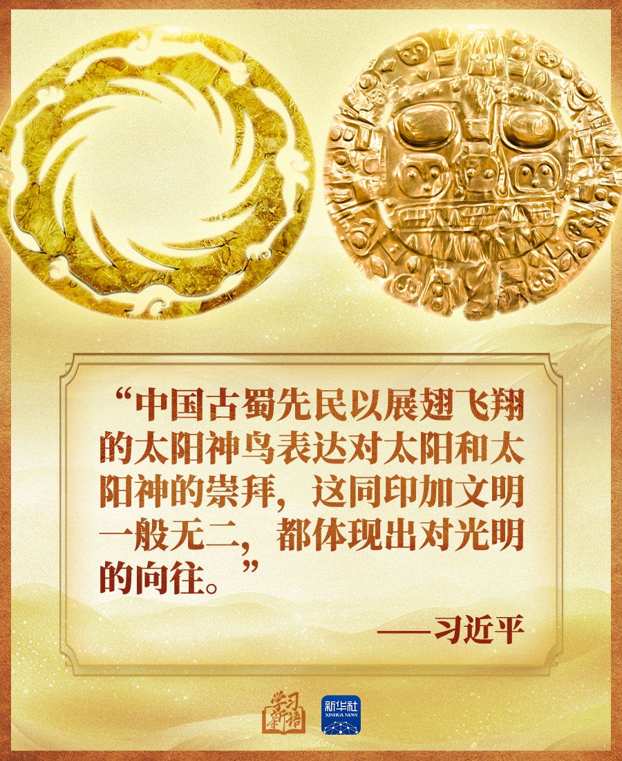 “中外考古學(xué)界認(rèn)為,中華文明和美洲文明實(shí)際上是同一祖先的后代在不同時代、不同地點(diǎn)的產(chǎn)物。文明的智慧讓我們理念相近、心靈相通?!?/p>