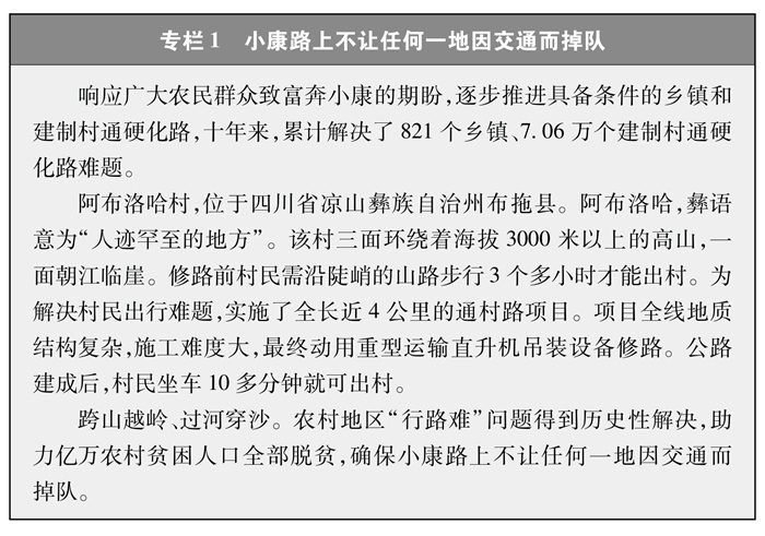 解決特殊地區(qū)出行難題。改一條溜索、修一段公路就能給群眾打開一扇脫貧致富的大門。為了保障偏遠(yuǎn)山區(qū)百姓安全出行,推動“溜索改橋”建設(shè),專項資金支持、精心組織實施,用3年時間徹底改善了溜索地區(qū)出行條件(專欄3)。推進“直過民族”③和人口較少民族聚居區(qū)農(nóng)村公路建設(shè),解決民族地區(qū)交通閉塞的突出問題,加快民族地區(qū)脫貧致富步伐。