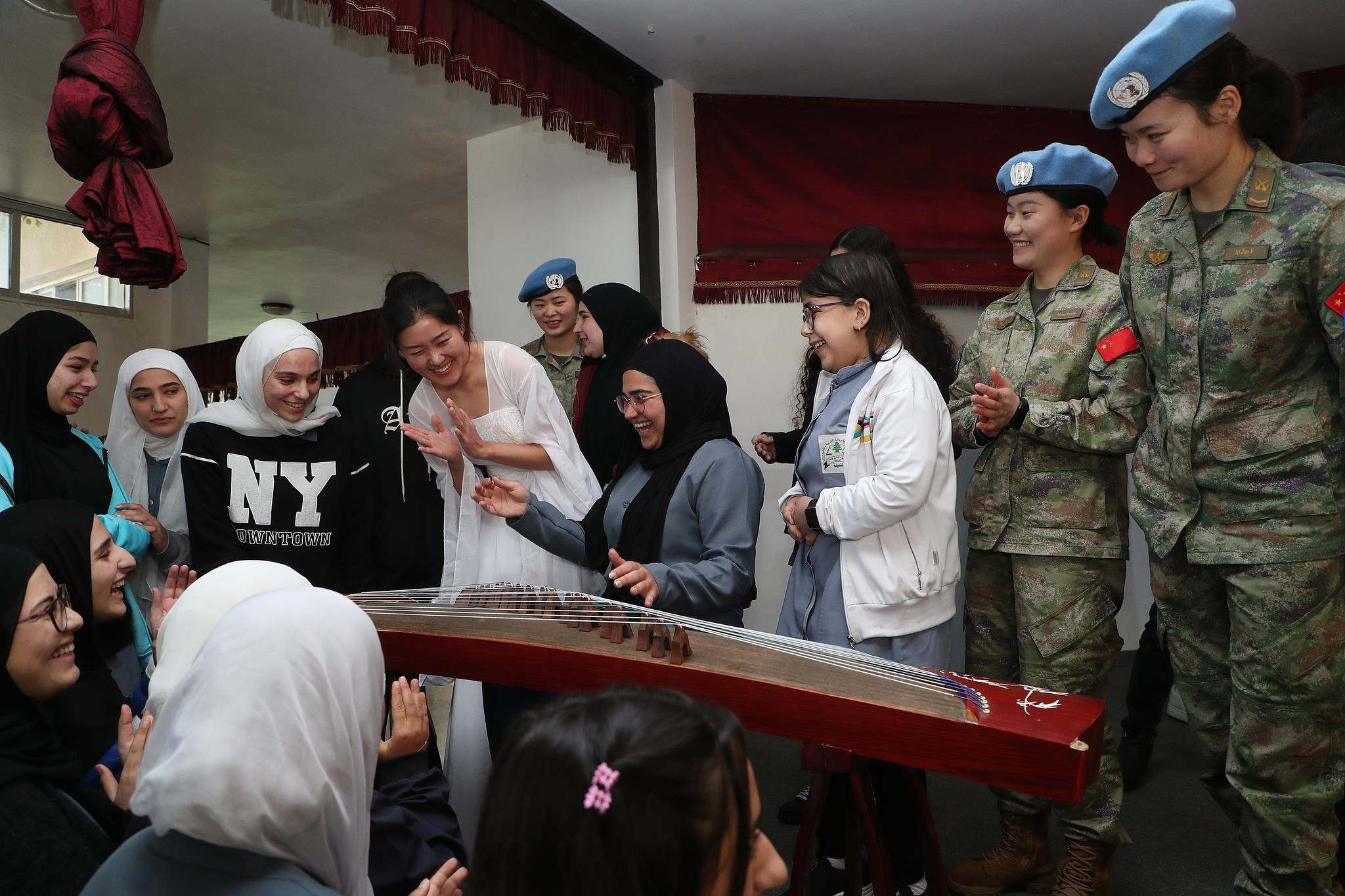 △2024年3月12日,中國第22批赴黎維和部隊官兵與黎巴嫩庫雷拉中學開展文化交流活動。
