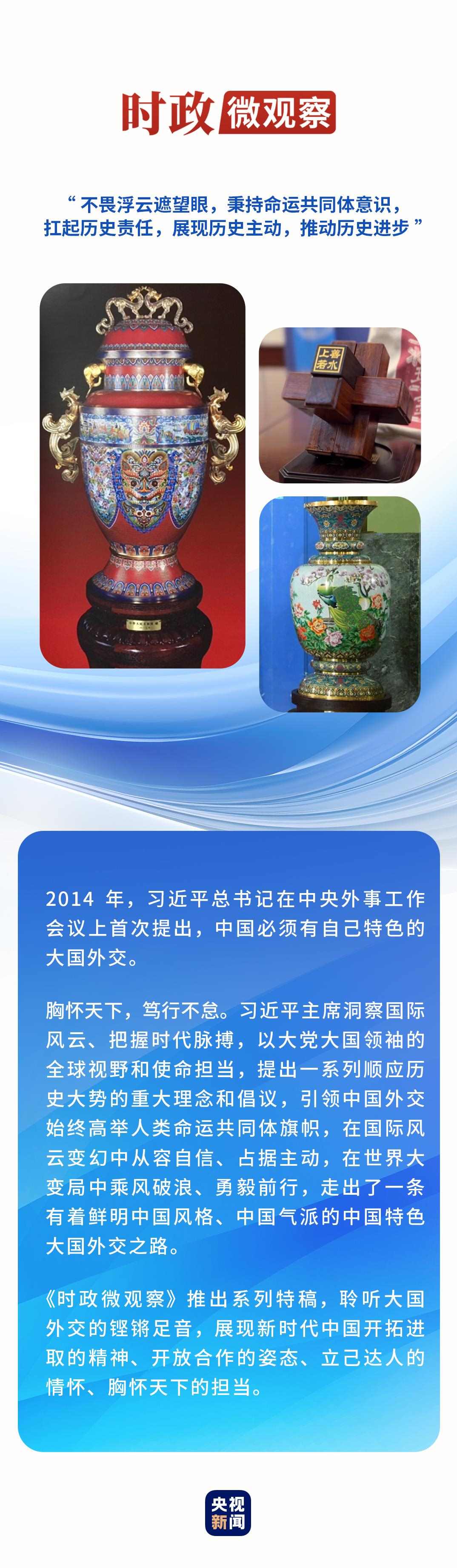 “四海升平”寄意世界和平、共同發(fā)展。和平與發(fā)展,也是中國特色大國外交的關鍵詞。中國始終高舉和平、發(fā)展、合作、共贏旗幟,在堅定維護世界和平中謀求自身發(fā)展,又以自身發(fā)展更好維護世界和平,持續(xù)做動蕩世界中的穩(wěn)定力量、和平力量。