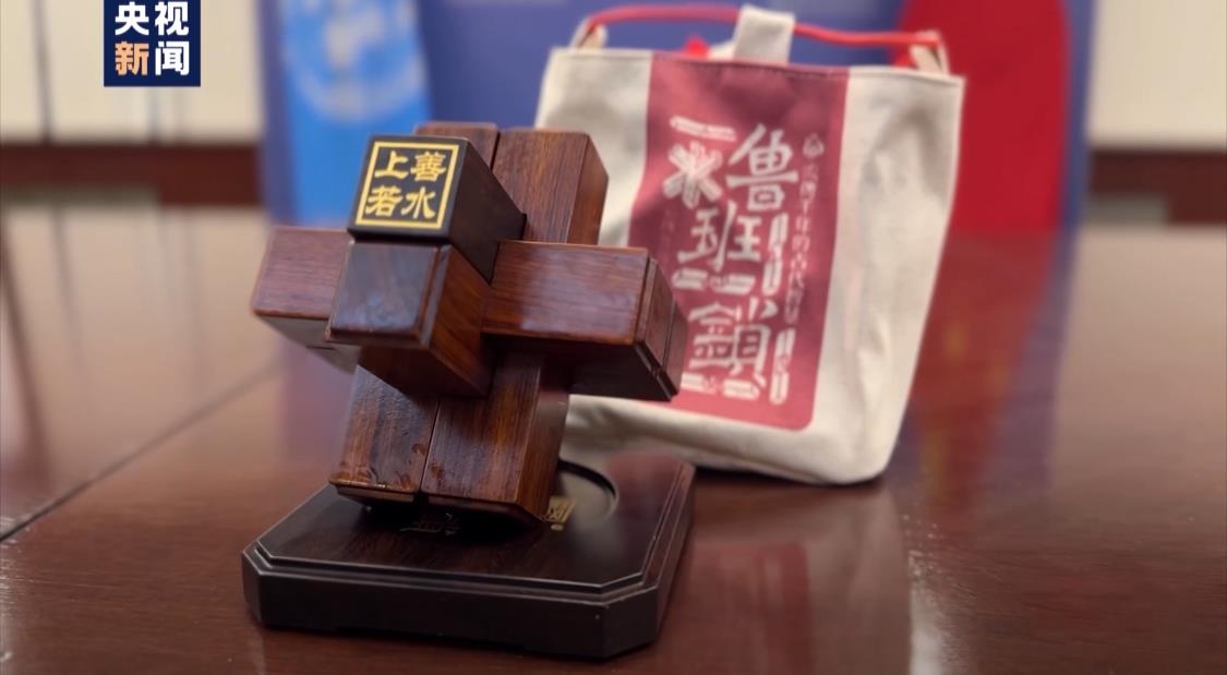六根棕色木條相互巧妙鎖定,構(gòu)成一個穩(wěn)定的整體。這是中國擔任2023年11月聯(lián)合國安理會輪值主席首日向安理會成員贈送的禮品——魯班鎖。
