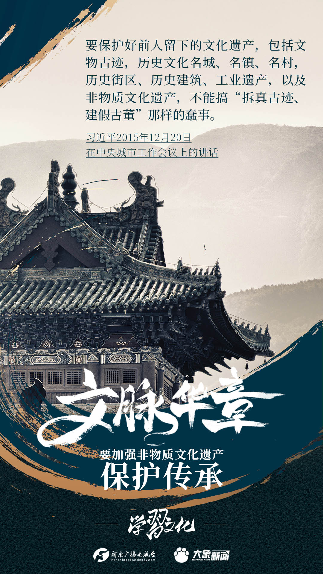 非物質(zhì)文化遺產(chǎn)是中華優(yōu)秀傳統(tǒng)文化的重要組成部分,是中華文明綿延傳承的生動(dòng)見證,是我國(guó)各族人民寶貴的精神財(cái)富。習(xí)近平總書記十分關(guān)心非物質(zhì)文化遺產(chǎn)的保護(hù)傳承,多次強(qiáng)調(diào)“要扎實(shí)做好非物質(zhì)文化遺產(chǎn)的系統(tǒng)性保護(hù)”“培養(yǎng)好傳承人”等。大象新聞為您梳理,邀您一起學(xué)習(xí)、領(lǐng)悟、踐行。