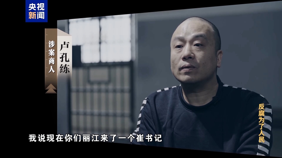 涉案商人 盧孔練:在出租車上我就跟司機(jī)聊天,我說(shuō)現(xiàn)在你們麗江來(lái)了一個(gè)崔書(shū)記。出租車司機(jī)他說(shuō)的很難聽(tīng),正事不干,天天打牌,他就跟我說(shuō)嘛。我聽(tīng)到這個(gè)話我就(心想)不好,我說(shuō)你怎么知道?(他說(shuō))麗江誰(shuí)不知道,大家都知道。