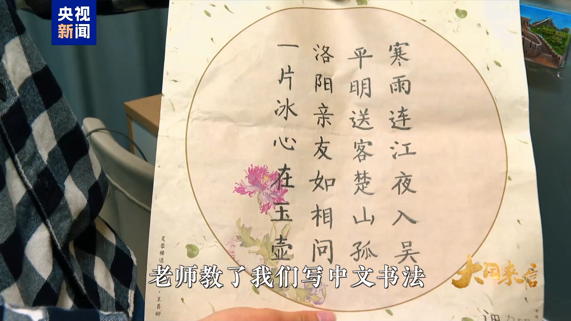 美國(guó)肯恩大學(xué)學(xué)生 亞歷山德羅·迪·雷奧:這些漢字是我們?cè)谥形恼n上寫的,老師教了我們寫中文書法,我們就寫了這些。