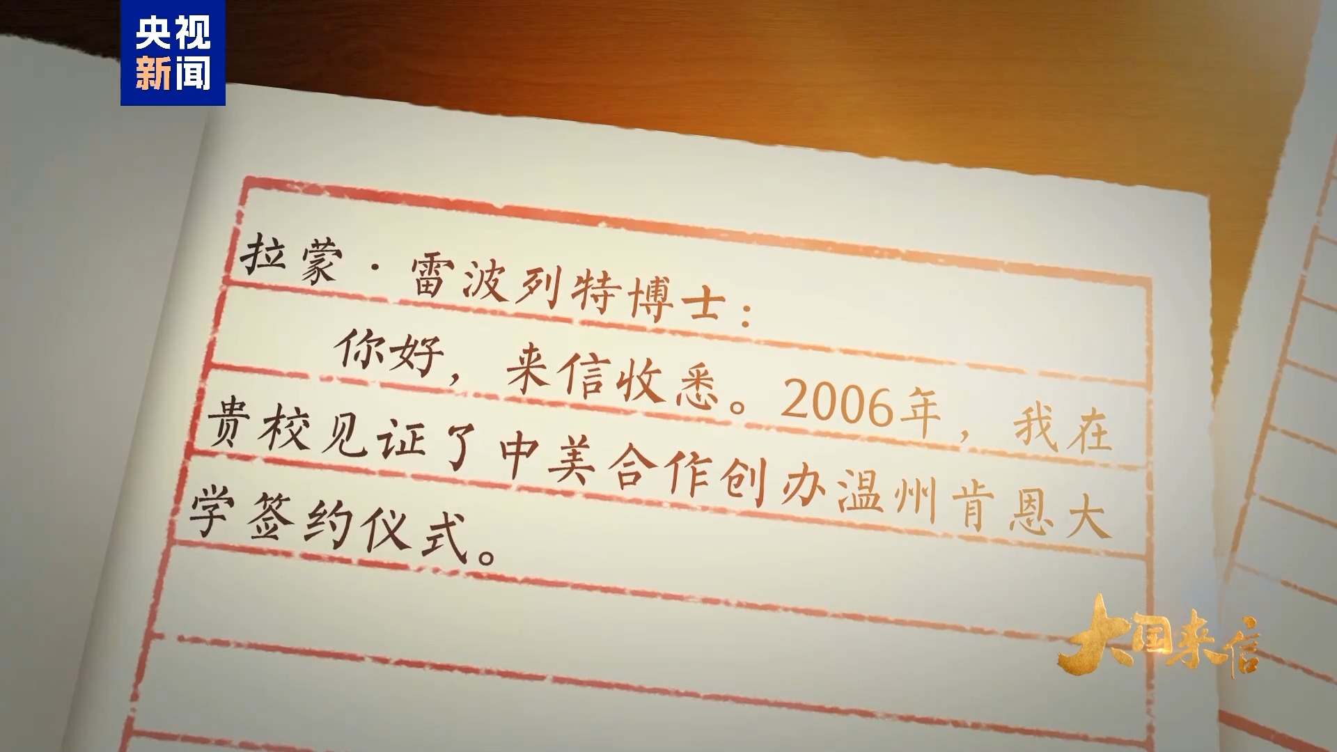 錦書云中來,尺牘傳深情。2006年,時(shí)任浙江省委書記習(xí)近平在美國(guó)肯恩大學(xué)見證了中美合作創(chuàng)辦溫州肯恩大學(xué)的簽約儀式。自2014年設(shè)立以來,溫州肯恩大學(xué)不僅培養(yǎng)了數(shù)千名中外學(xué)子,還推動(dòng)了中美兩國(guó)青年一代的友好交流。去年6月,習(xí)主席復(fù)信美國(guó)肯恩大學(xué)校長(zhǎng)拉蒙·雷波列特,鼓勵(lì)中美兩國(guó)高校加強(qiáng)交流合作,為促進(jìn)中美友好貢獻(xiàn)力量。
