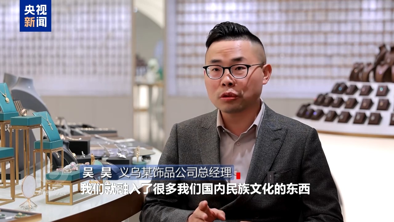 義烏某飾品公司總經(jīng)理 吳昊:在這一塊,融入了很多我們國內(nèi)民族文化的東西,重新組合去創(chuàng)造,他們都會(huì)喜歡這個(gè)東西。其實(shí)歸根結(jié)底,還是我們通過這么多年的發(fā)展,我們國家人民的日子越過越好的時(shí)候,這個(gè)民族文化的自信是從國人的骨子里面迸發(fā)出一種自信的體現(xiàn)。