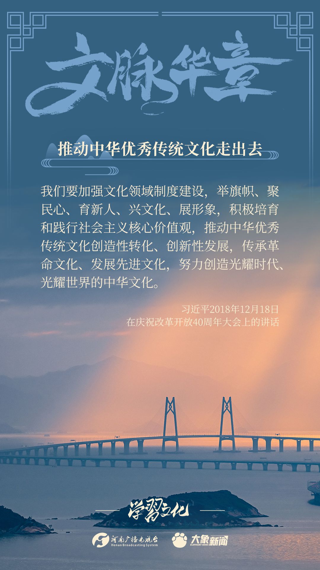 黨的十八大以來,習(xí)近平總書記高度重視中華優(yōu)秀傳統(tǒng)文化的傳承發(fā)展,突出強調(diào)推動中華優(yōu)秀傳統(tǒng)文化走出去,作出了一系列重要論述,大象新聞邀您一起學(xué)習(xí)。
