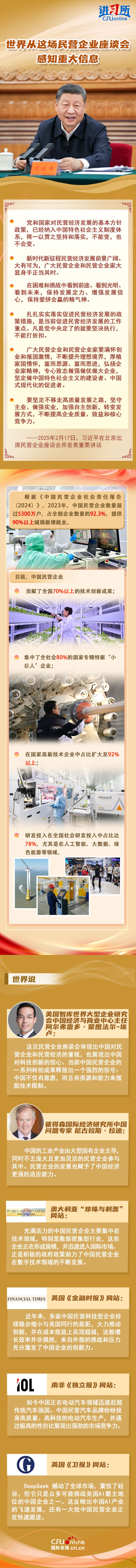 2月17日,中國為民營企業(yè)高質(zhì)量發(fā)展專門召開了一場(chǎng)最高規(guī)格的座談會(huì)。中共中央總書記、國家主席習(xí)近平出席座談會(huì),聽取6名知名民營企業(yè)家就新形勢(shì)下促進(jìn)民營經(jīng)濟(jì)發(fā)展的建議和意見,并發(fā)表重要講話。