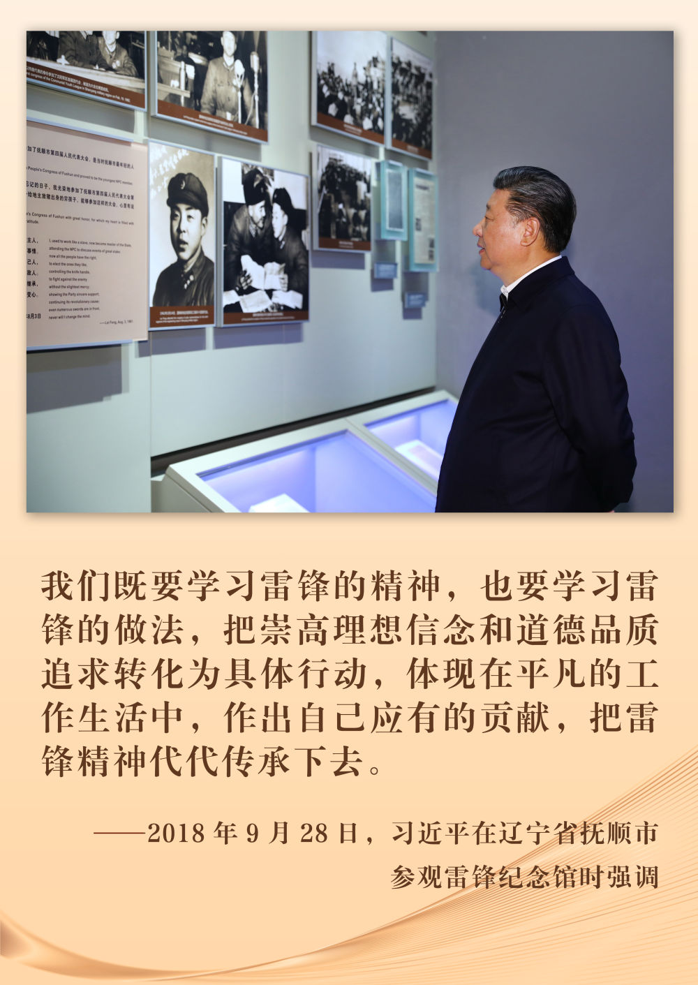“實(shí)踐證明,無論時(shí)代如何變遷,雷鋒精神永不過時(shí)?!秉h的十八大以來,習(xí)近平總書記在多個(gè)場合發(fā)表講話、作出指示,深刻闡明雷鋒精神的永恒價(jià)值,明確要求發(fā)展壯大學(xué)雷鋒志愿服務(wù)隊(duì)伍,為新時(shí)代更好弘揚(yáng)雷鋒精神提供了根本遵循。