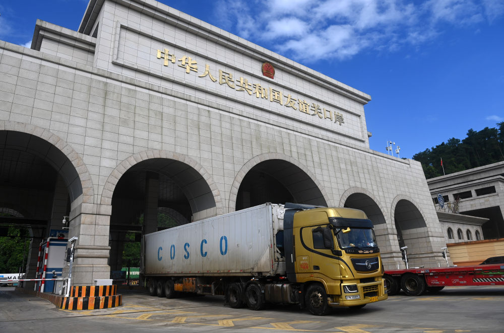 2024年8月26日,一輛貨車通過廣西憑祥友誼關口岸。友誼關口岸是西部陸海新通道的重要節(jié)點,是中國通往東盟最大的陸路口岸,也是我國通往越南最便捷的陸路大通道之一。滿載著東盟國家特色水果、農(nóng)副產(chǎn)品與中國電子配件、大型設備等貨品的車輛在此“雙向奔赴”、川流不息。2024年,友誼關口岸年內(nèi)出入境貨車數(shù)量首次突破50萬輛次,同比增長15.96%,創(chuàng)歷史新高。