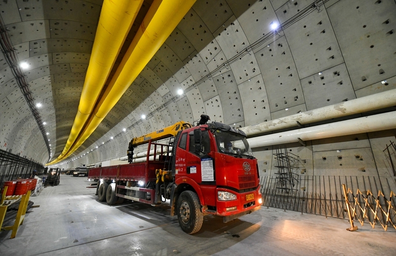 6月22日,施工車輛在濟南市黃崗路穿黃隧道內(nèi)行駛。