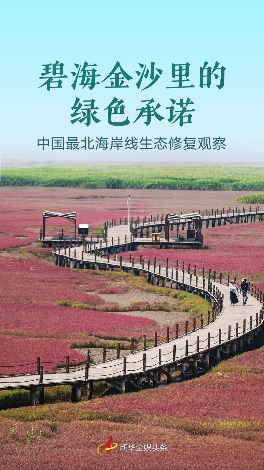遼寧海濱,北緯39度的海風(fēng)掠過浮光躍動的海灣,丹頂鶴在紅海灘間蹁躚起舞;海岸線上,執(zhí)法船在巡航,電子眼守護(hù)著潔凈的沙灘;沙灘上,志愿者拾起漂浮的塑料瓶……交織成一幅動人的生態(tài)畫卷。
