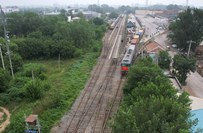 6月30日,北京至阿塞拜疆巴庫的跨里海中歐班列??吭谖挥诒本┦蟹可絽^(qū)的北京國(guó)際陸港等待發(fā)車。
