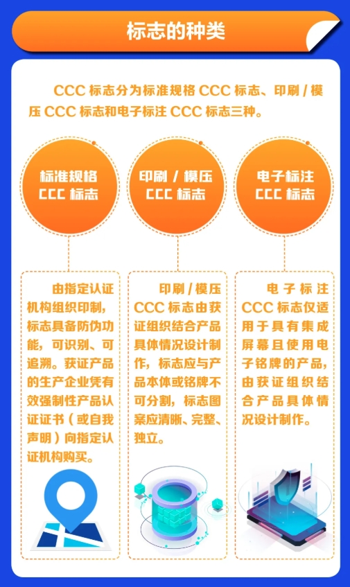 這份解讀明確,CCC標(biāo)志分為標(biāo)準(zhǔn)規(guī)格CCC標(biāo)志、印刷/模壓CCC標(biāo)志和電子標(biāo)注CCC標(biāo)志三種。其中的標(biāo)準(zhǔn)規(guī)格CCC標(biāo)志由指定認(rèn)證機(jī)構(gòu)組織印制,標(biāo)志具備防偽功能,可識(shí)別、可追溯。獲證產(chǎn)品的生產(chǎn)企業(yè)憑有效強(qiáng)制性產(chǎn)品認(rèn)證證書(或自我聲明)向指定認(rèn)證機(jī)構(gòu)購買。