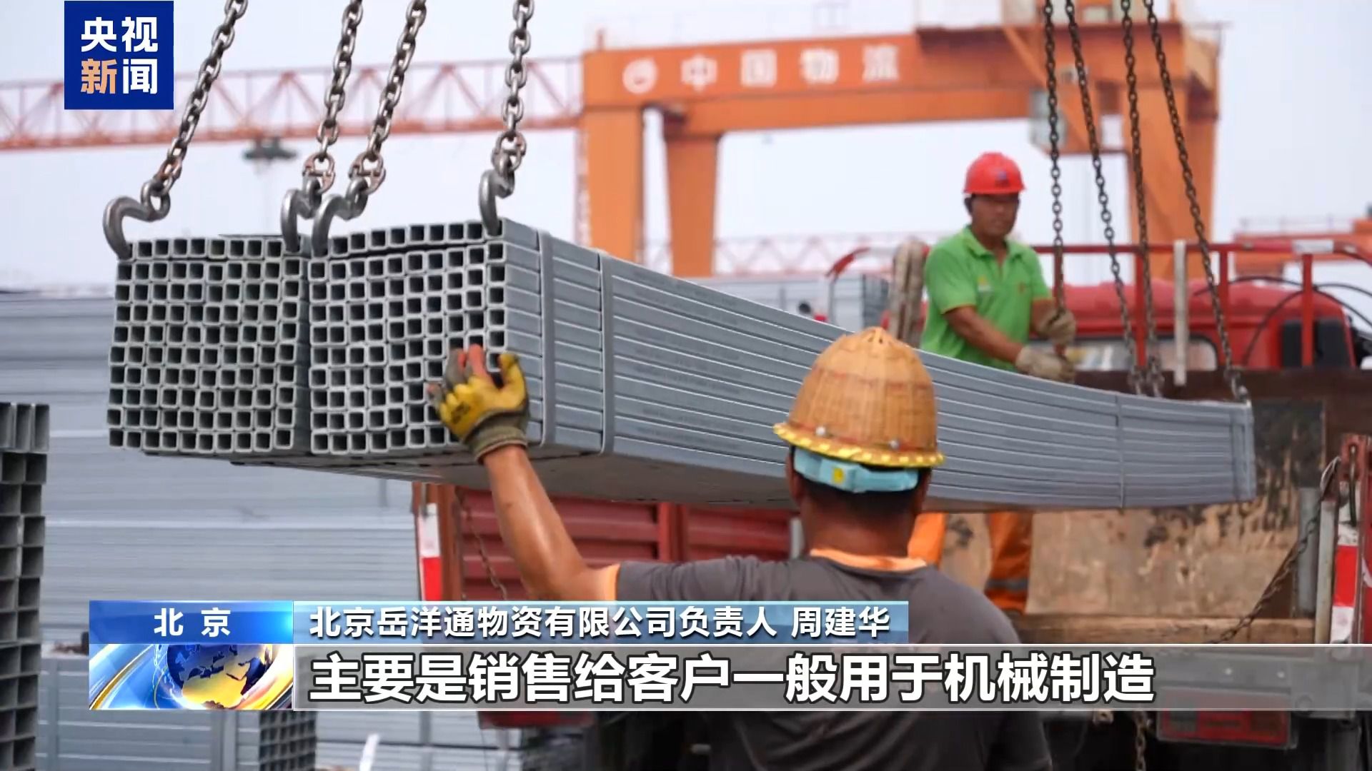 在北京的這家鋼貿(mào)企業(yè),記者看到前來提貨的卡車排成了隊。負責人告訴記者,眼前這些正在裝車的長方形的鋼管就是常見的工業(yè)用鋼材。