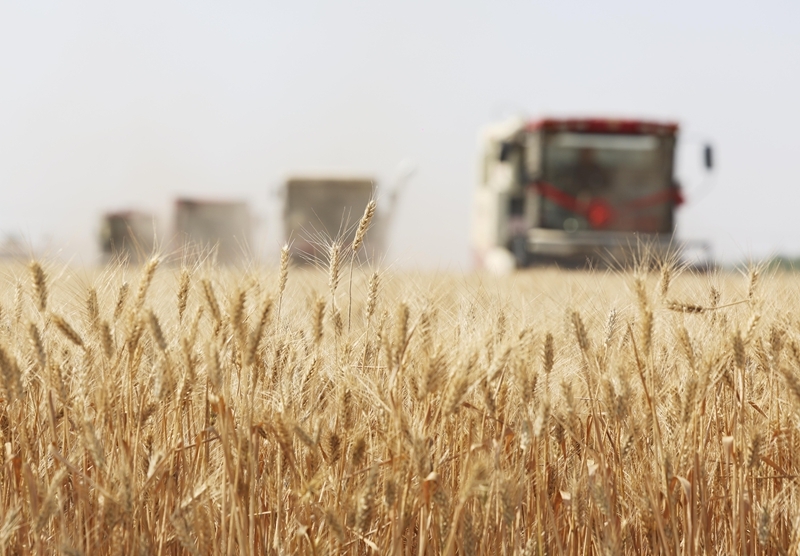6月5日,河南省焦作市溫縣武德鎮(zhèn)農(nóng)民駕駛收割機(jī)收獲小麥。