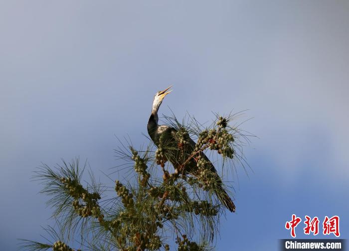 中新網(wǎng)海南昌江7月13日電(陳英清)近日,海南昌江海尾國(guó)家濕地公園記錄到1只黑腹蛇鵜。經(jīng)海南省鳥(niǎo)類記錄中心專家確認(rèn),這是海南省首次記錄到該鳥(niǎo)種。黑腹蛇鵜已被《世界自然保護(hù)聯(lián)盟瀕危物種紅色名錄》(IUCN)列為近危(NT)物種。