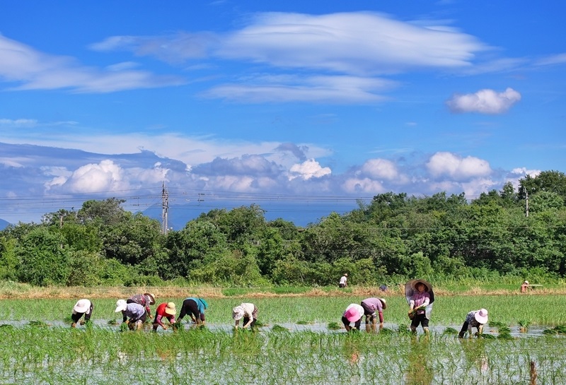 7月21日,農(nóng)民在湖南省婁底市雙峰縣荷葉鎮(zhèn)長(zhǎng)塘村的田間插秧。