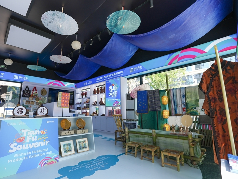 這是8月3日在成都世運會運動員村A區(qū)拍攝的四川特色產品展示展銷館。