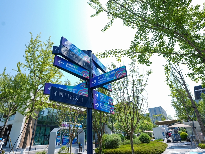 這是8月3日在成都世運會運動員村A區(qū)拍攝的指示牌。