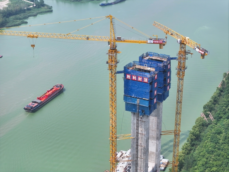 當日,由中國鐵建大橋局承建的滬渝蓉高鐵跨京杭運河斜拉橋主塔順利封頂。至此,大橋核心支撐結構施工圓滿收官,項目全面轉入鋼梁及斜拉索安裝新階段。該橋位于江蘇揚州境內,是滬渝蓉高鐵全線關鍵控制性工程,橋長564.3米,主跨300米。