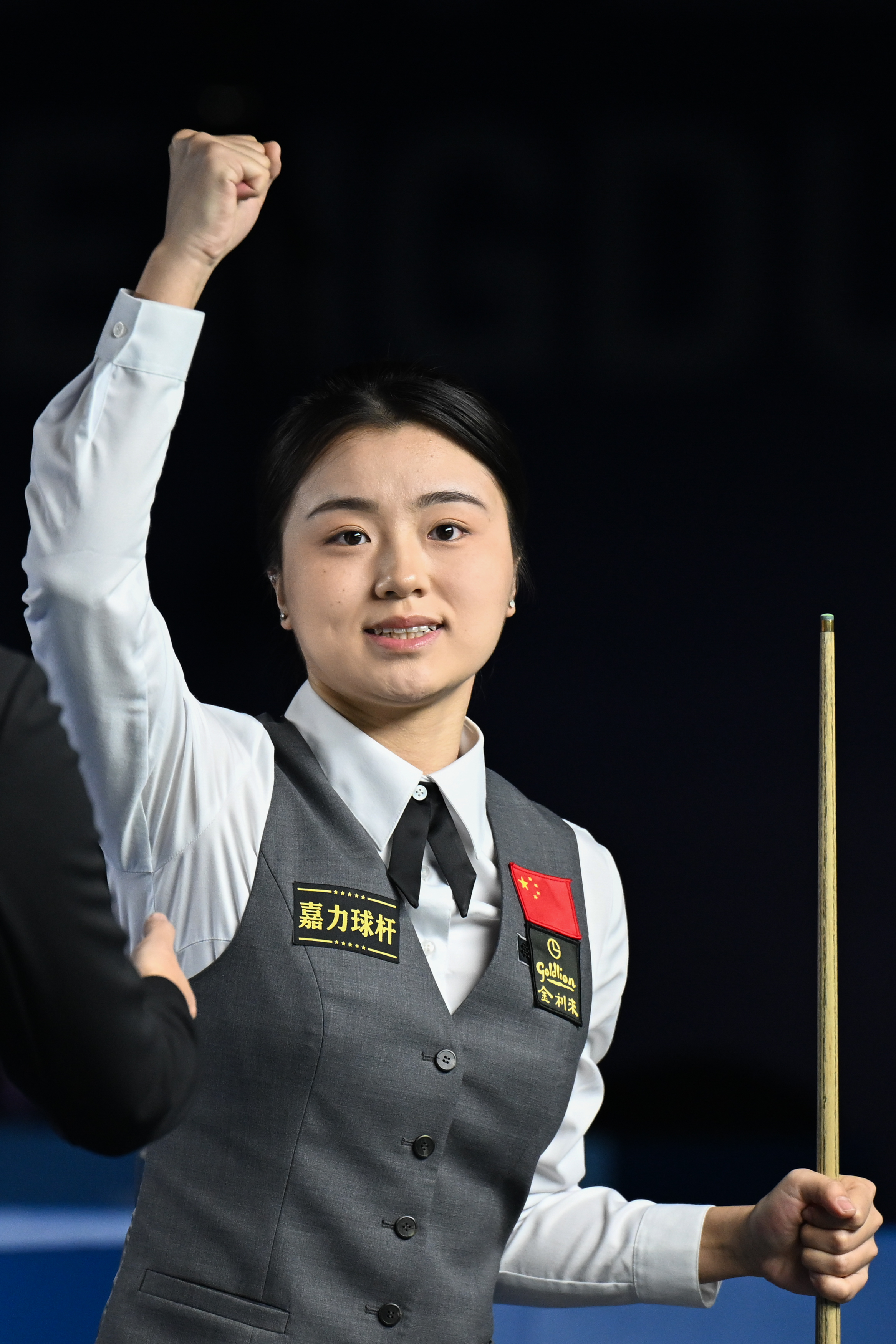 由于世運(yùn)會(huì)斯諾克項(xiàng)目采用三局兩勝制,選手們?cè)谶M(jìn)攻選擇上都格外謹(jǐn)慎。決賽首局雙方在攻防兩端幾度糾纏,最終對(duì)手防守出現(xiàn)漏洞,白雨露上手42:18拿下首局。第二局的劇情更為跌宕起伏,白雨露取得10:1領(lǐng)先后貢獻(xiàn)精彩防守,那魯差數(shù)度解球未果,被罰20分。不過(guò)白雨露隨后上手后白球掉袋,那魯差一度將分差縮小至10分。此時(shí)臺(tái)面只剩兩顆球,分?jǐn)?shù)仍夠?qū)κ址闯jP(guān)鍵時(shí)刻,白雨露果斷選擇進(jìn)攻遠(yuǎn)臺(tái)粉球,隨著粉球應(yīng)聲落袋,體育館內(nèi)爆發(fā)出熱烈的歡呼。雙方握手之后,白雨露轉(zhuǎn)向觀眾,舉起握拳的右手。