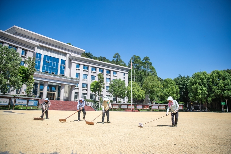 8月20日,人們?cè)谥貞c市永川區(qū)紅爐鎮(zhèn)政府廣場(chǎng)上晾曬糧食。